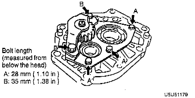 7. Install and tighten the reverse idler gear shaft installation bolt to 9 - 12 Nm (79 - 112 inch lbs.).