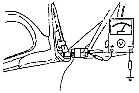 2. Measure the voltage at the terminal wires of the outside mirror connector with the power outside mirror switch in the following positions.