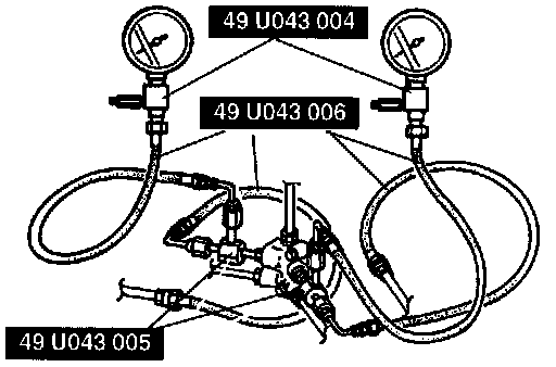 1. Connect the special service tools to the brake pipes with adapters as shown in the figure.