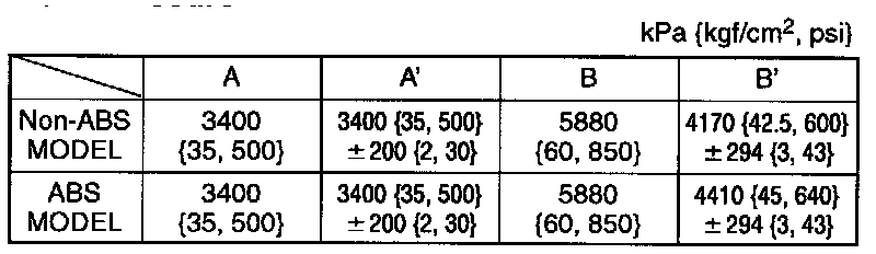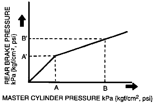 3. Depress the brake pedal until the master cylinder pressure equals A, then record rear brake pressure A.