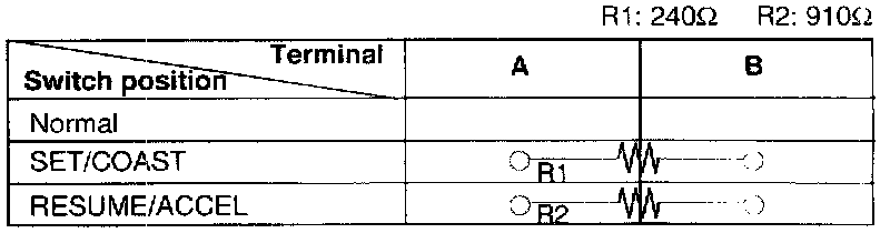 2. Measure the resistance between the terminals of the cruise control switch.