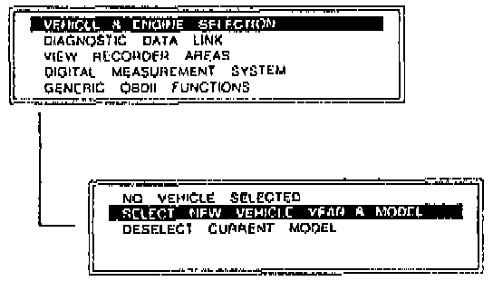 3. Select "VEHICLE & ENGINE SELECTION" on the SST (Control Unit) display, and then select the vehicle model, engine type, and model year.