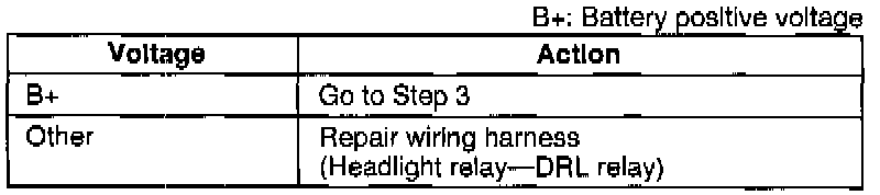4. Measure the voltage at terminal F(W) of the DRL relay connector.