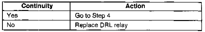 Check for continuity between terminal C(L) and F(W) of the DRL relay connector.