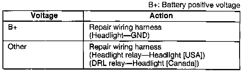 3. Measure the voltage at terminal C(W) of the headlight connector.