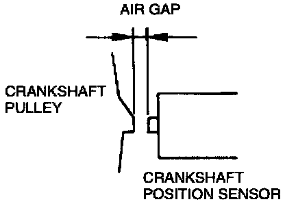 2. Adjust the air gap between the crankshaft pulley projection and the crankshaft position sensor by using a feeler gauge.