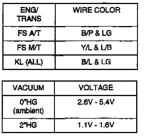 When checking the voltage reading a "0"HG, disconnect the vacuum hose to the boost sensor.