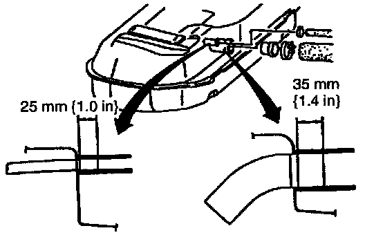 2. Push the fuel filler hose onto the fuel tank pipe and filler pipe at least 35 mm (1.4 in.).