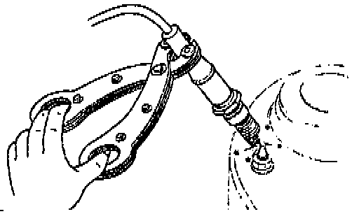 3. Hold the high-tension lead and spark plug with insulated pliers 5-10 mm {0.20-39 in} from a ground.