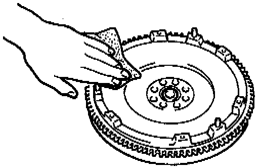3. Inspect the ring gear teeth for wear and damage. If necessary, replace the ring gear.