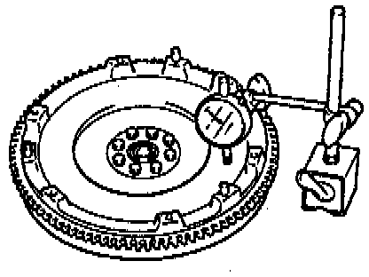 4. Measure the flywheel runout by using a dial indicator. Replace the flywheel if runout is excessive. Runout should be 0.200 mm (0.0079 inch) maximum.