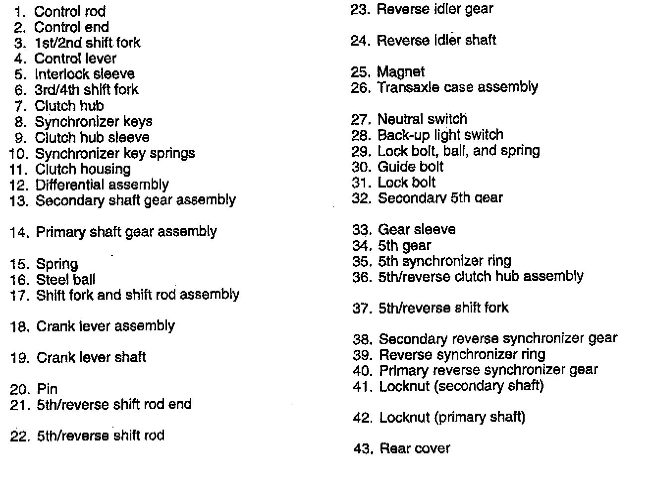 1. Shift to 2nd gear and position the shift fork and shift rod assembly as shown.