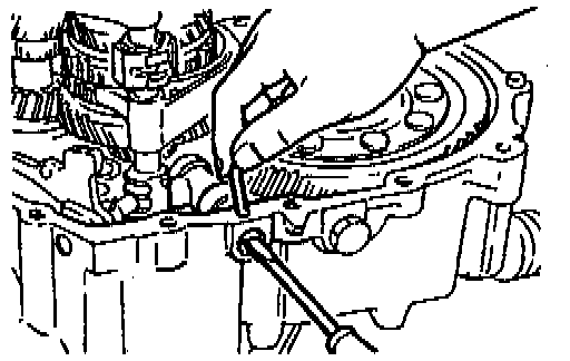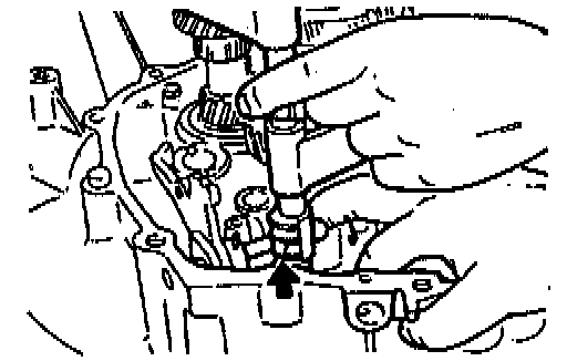 3. With the edge of the control end against the scraper, push the control end in the direction of the arrow so that the ball goes into the shaft. This will line up the rod with the shift rod coupling hole in the clutch housing.