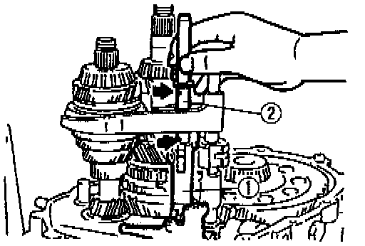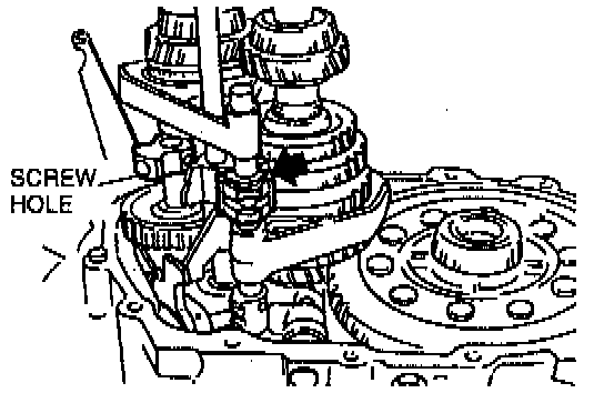 3. Align the end of the interlock sleeve with the control lever (arrow), and at the same time, face the reverse idler shaft screw hole in the direction shown in the figure.