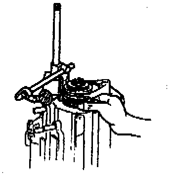 4. Set each clutch hub sleeve to the neutral position, and tap the shift rod from above so that the steel ball goes into the center groove (of the three grooves in the control end).
