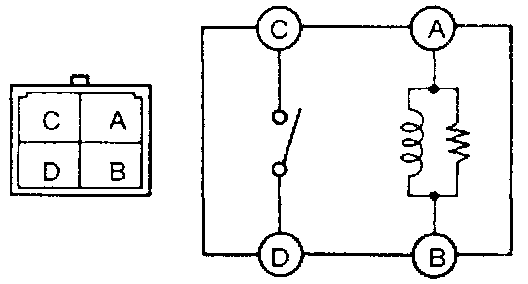 2. Apply battery voltage and check for continuity between the relay terminals.