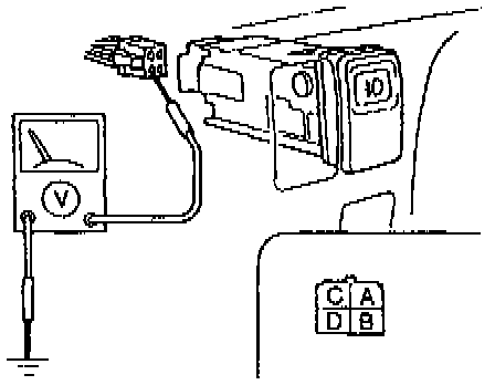3. Measure the voltage at terminal B(G/B) of the front tog light switch connector.