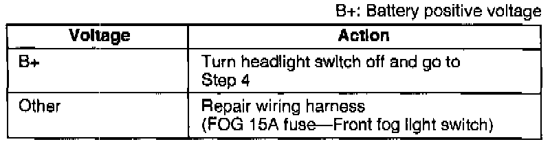 4. If not as specified, replace the front fog light switch.