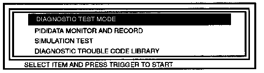 4. Select "DIAGNOSTIC TEST MODE" function and press trigger.