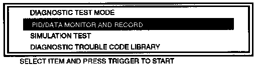 4. Select the PID/DATA MONITOR AND RECORD function of the New Generation Star (NGS) tester.