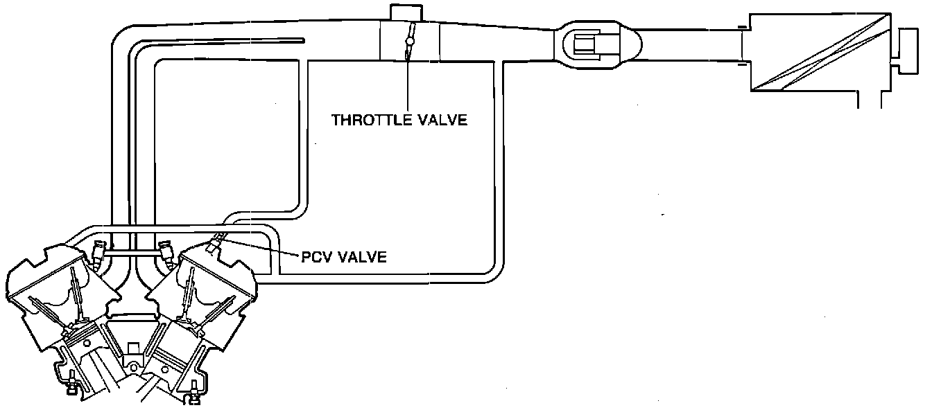 The PCV valve is operated by the intake manifold vacuum.When the engine is running at idle, the PCV valve is slightly open and a small amount of blowby gas is drawn into the dynamic chamber to be burned. As the engine speed rises, the PCV valve is opened further, allowing a larger amount of blowby gas to be drawn into the dynamic chamber.