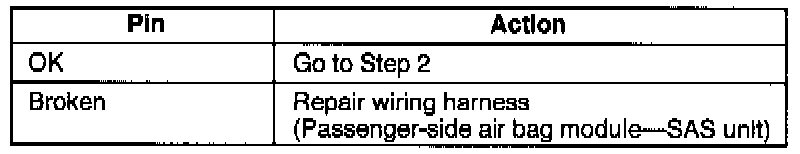 2. Verify that the passenger-side air bag module connector pin is not broken.