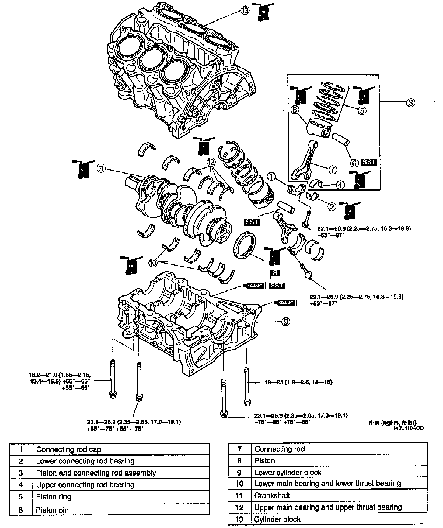 Tightening torque: 23.1 - 25.9 Nm {2.35 - 2.65 kgf/m, 17 - 19.1 ft. lbs.}