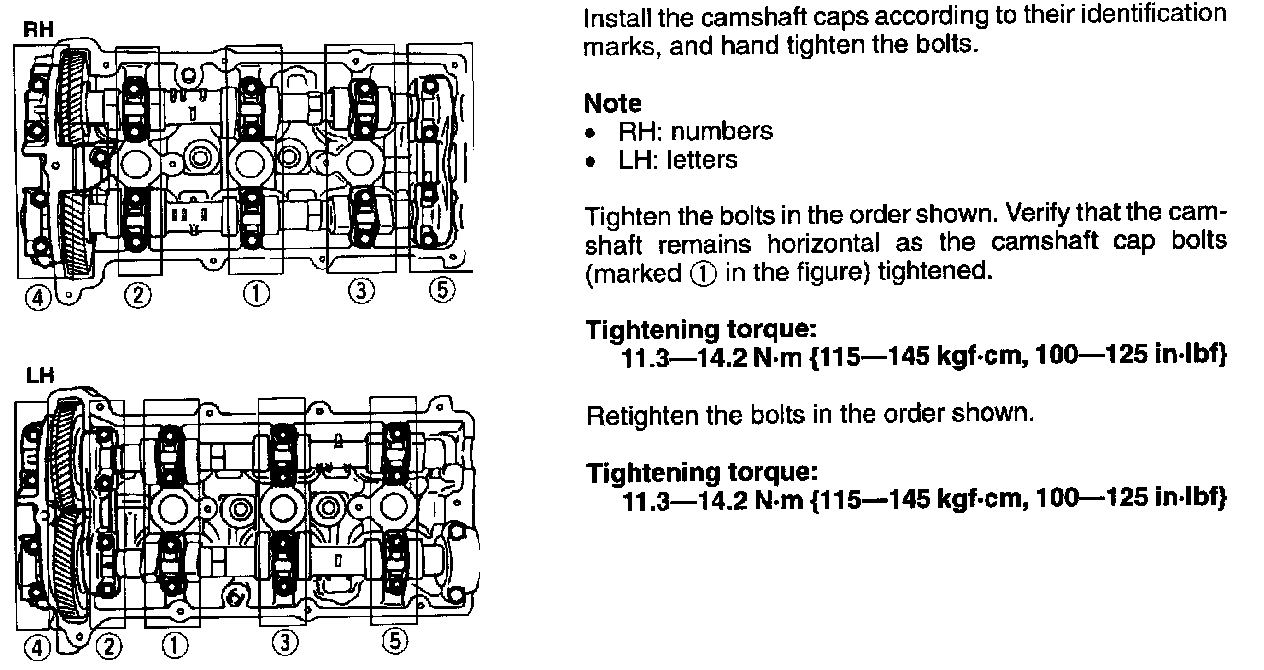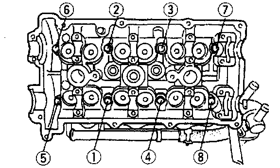 Using the marks as a reference, tighten the bolts by turning each 85° - 95° in the sequence shown.
