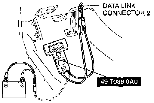 1. In the passenger compartment, connect the Special Service Tools New Generation Star (NGS) tester to the data link connector-2 as shown in the figure.