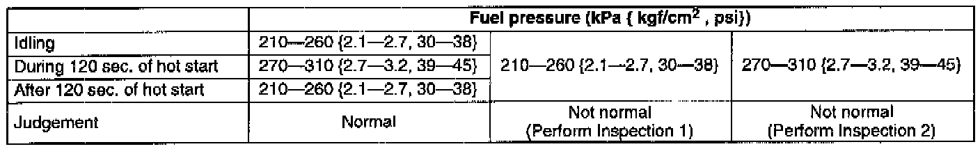 3. If the fuel pressure is not within the specification, carry out either Inspection 1 or Inspection 2 as required.