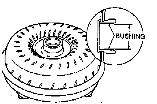 3. Measure the bushing of the converter boss. Replace the converter assembly if the bushing is excessively worn. Bushing inner diameter standard is 53.000 mm (2.0866 inch) and the maximum is 53.045 mm (2.0884 inch).
