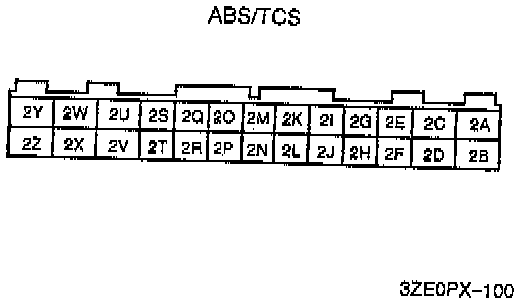 1. Turn the ignition switch OFF and disconnect the ABS control module connector.
