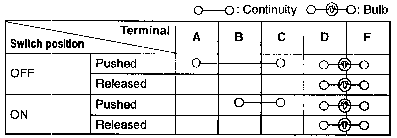2. Check for continuity between the cluster switch terminals.