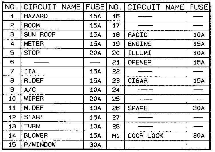 Fuse Location/Application Chart: