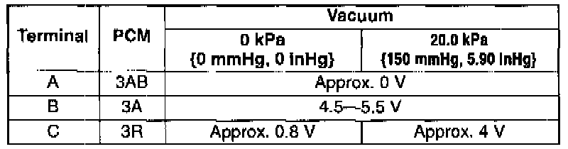 5. Measure the voltage at the terminals as shown in the table.