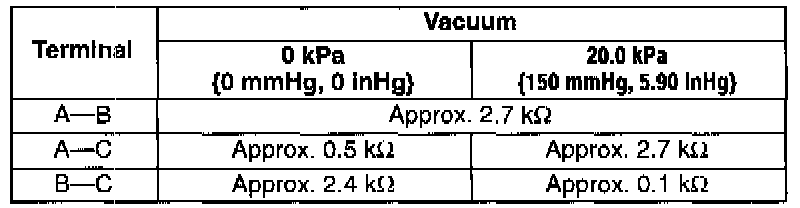 3. Use an Ohmmeter to measure the resistance between the terminals as shown in the table.
