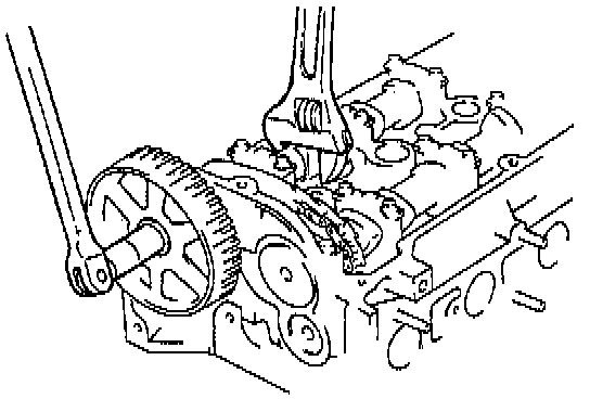 4. Turn the crankshaft clockwise 2 and 1/6 times, and verify that all timing marks are correctly aligned.