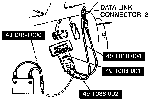 1. In the passenger compartment, connect the Special Service Tool New Generation Star (NGS) tester to the data link connector 2 as shown in the figure.