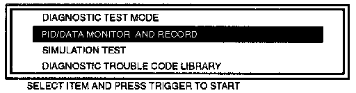 2. Referring to the NGS operational manual, select the "PID DATA MONITOR AND RECORD" and press TRIGGER.