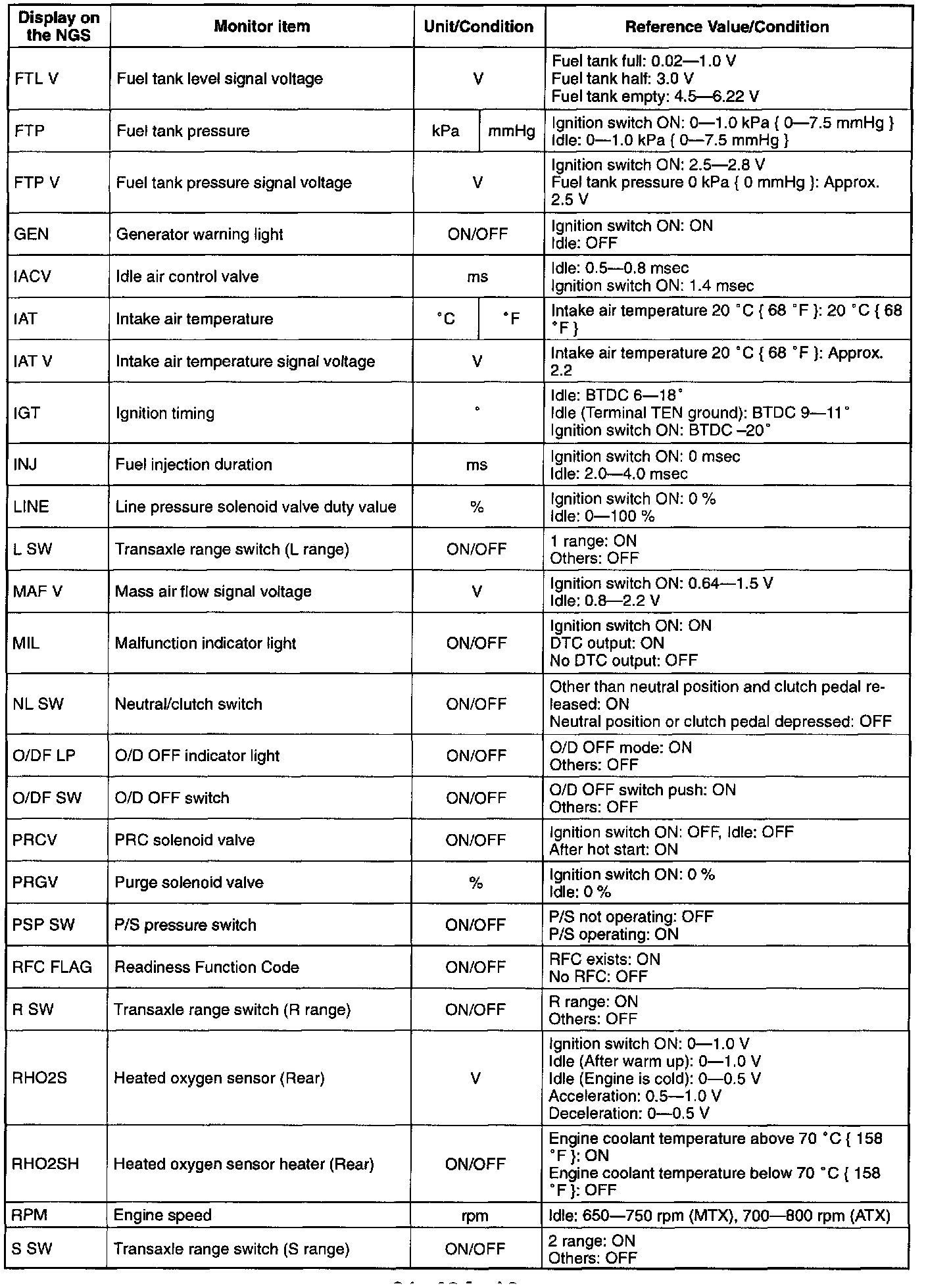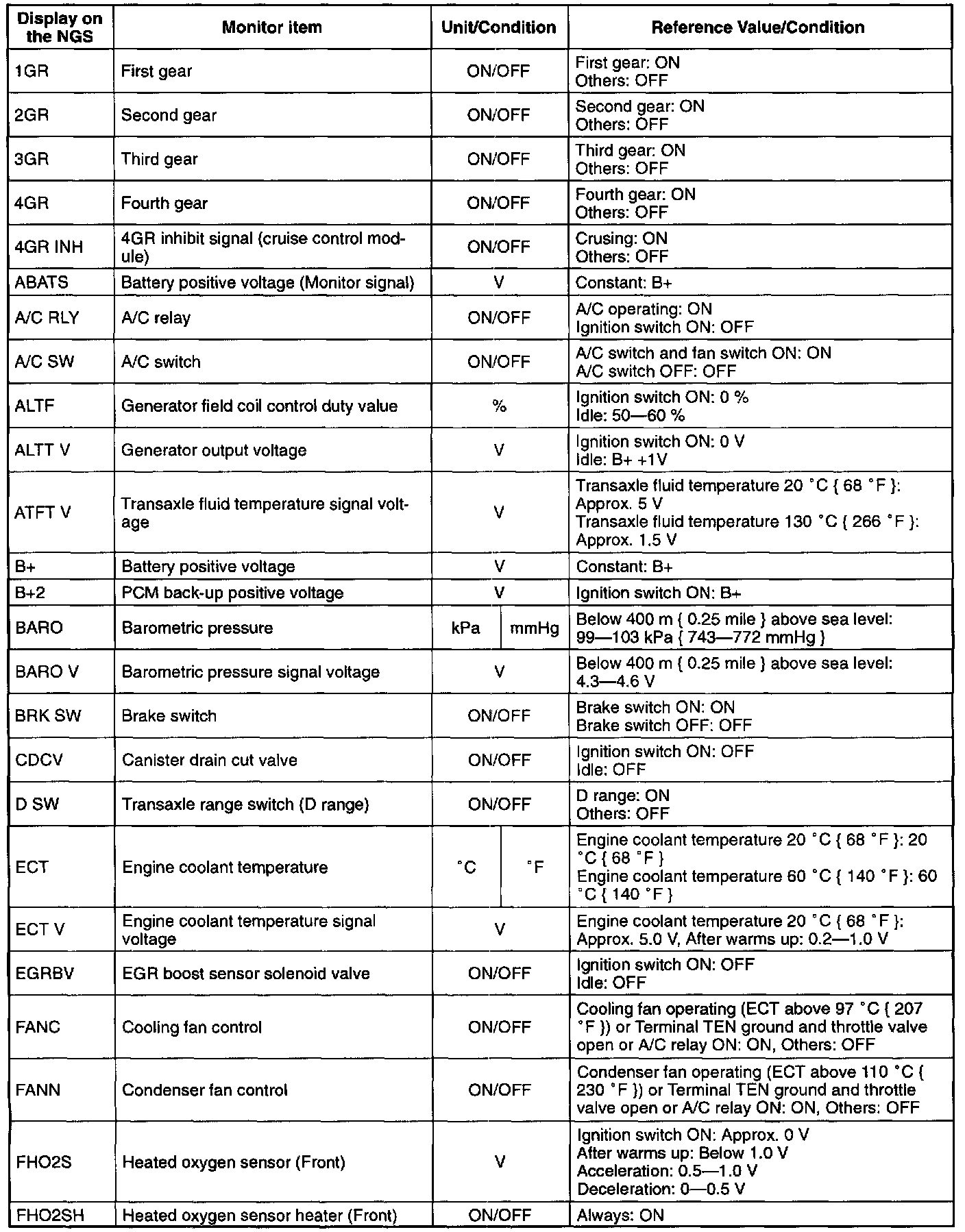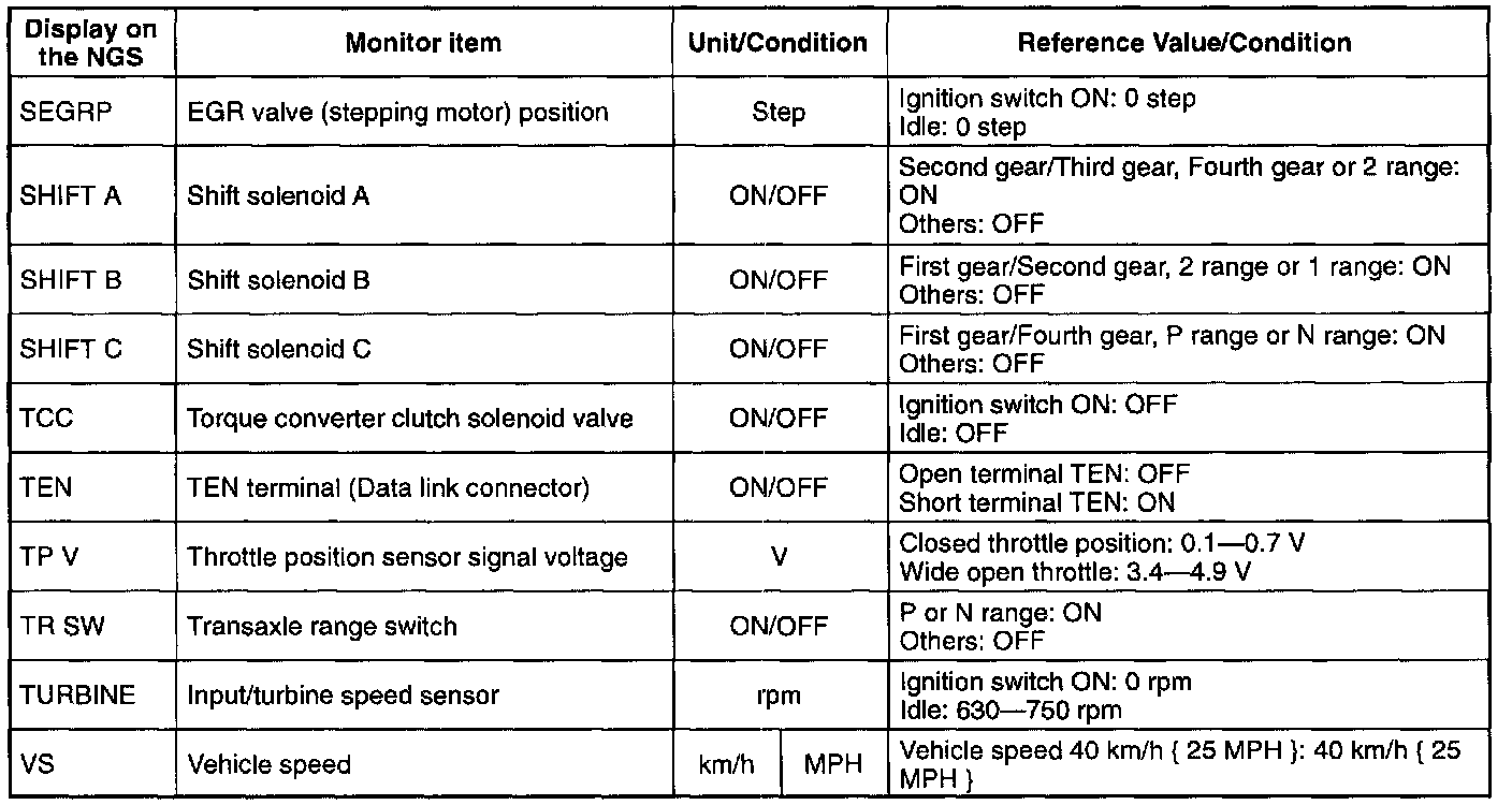 - For inspection of the input/output signals other than listed below, check voltage at the applicable PCM terminal by using the Special Service Tool (Engine Signal Monitor).