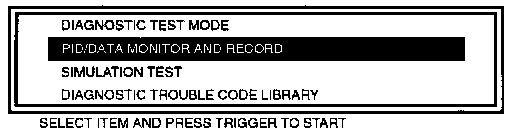 4. Select the PID/DATA MONITOR AND RECORD function on the NGS display.