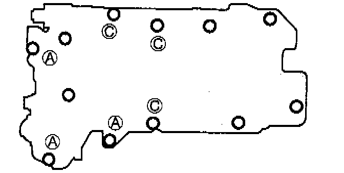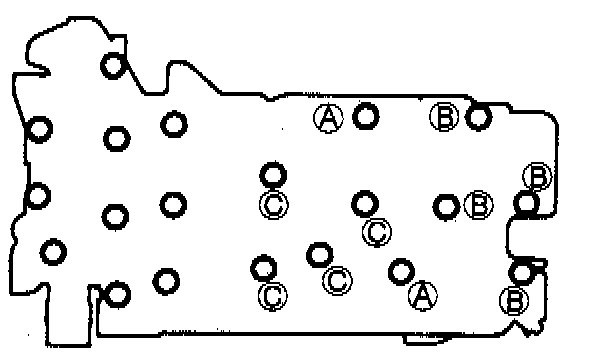 5. Install and hand-tighten the bolts shown in the illustration. Each type of bolt has a different letter on its head. Match the bolt leper with the leper stamped next to its installation hole on the valve body.