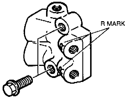 - Install the dual proportioning valve so that the R mark faces right side of the vehicle.