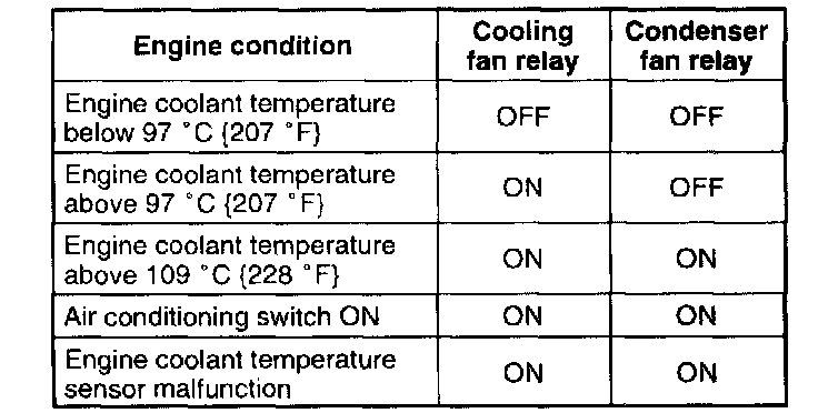 - Open circuit between ignition switch and condenser fan relay.