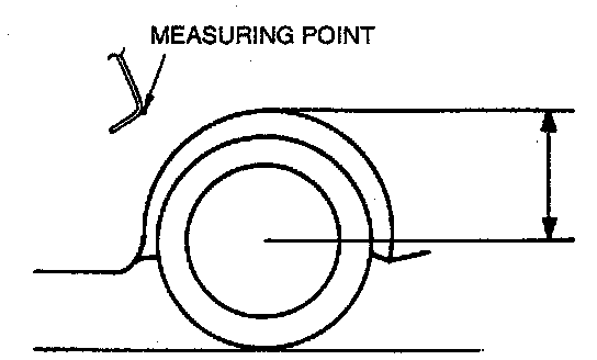 7. Measure the height from the center of the wheel to the fender brim. The difference between the left and right measurement must not exceed 10 mm (0.39 inch).