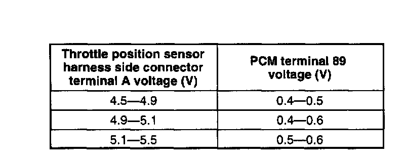 (8) When the throttle valve is at the wide open throttle, verify that the PCM terminal 89 voltage is in the specification.