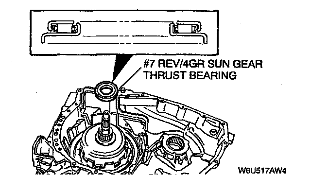 PART 2 OF 351. Install the # 7 reverse/fourth gear sun gear thrust bearing.