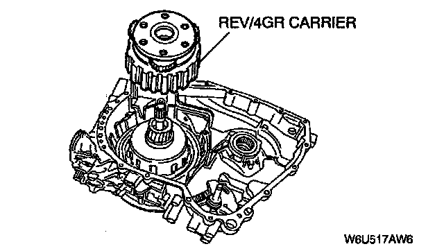 53. Install the reverse/fourth gear carrier with the captured # 8 reverse/fourth gear carrier thrust bearing.
