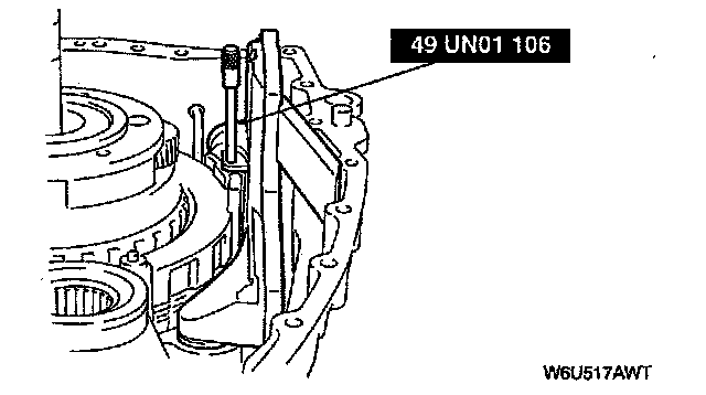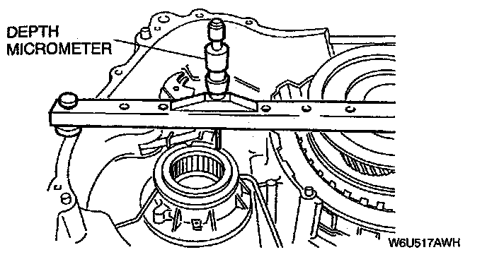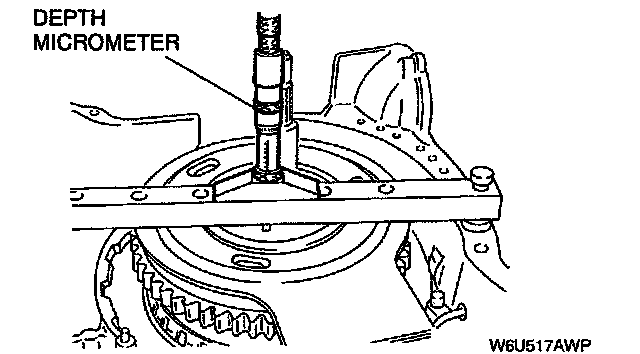 64. Use a depth micrometer to measure the distance from the top of the gauge bar to the bearing surface on the reverse/fourth gear carrier. Repeat this measurement on the other side of the turbine shaft. Average the two measurements. This is dimension A.