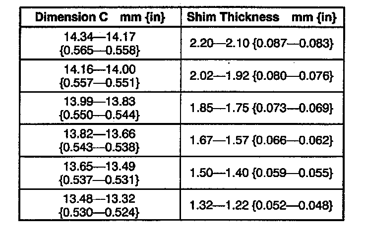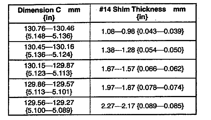 94. Use dimension C to select the proper # 14 differential bearing shim from the chart.